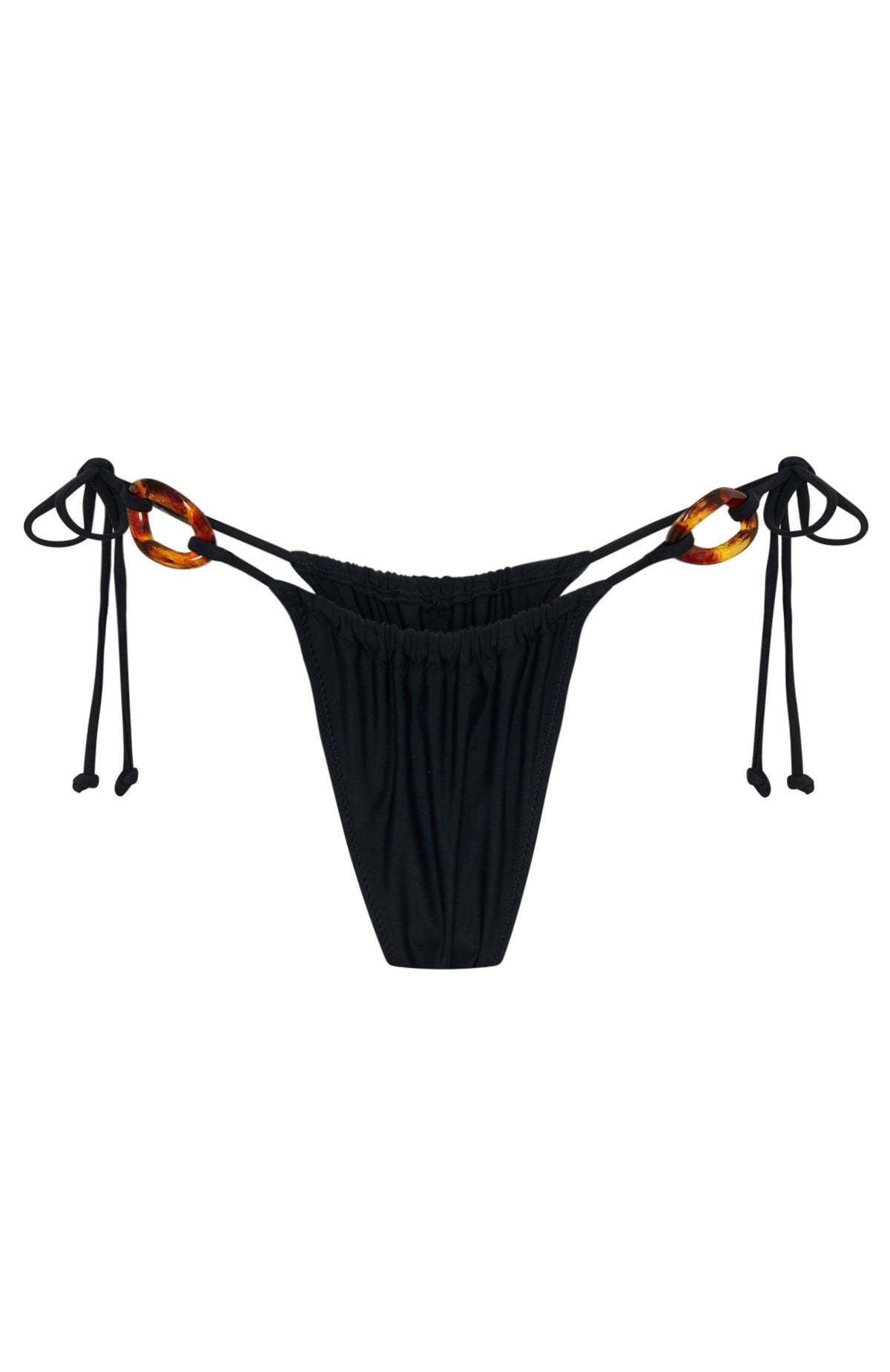 Dive into tropical vibes with our Paradise Drift Bikini Bottoms in Black! Featuring lined material, cheeky cut design, tie up sides with gold plate detail and adjustable ruching along front and back. Pair with the matching Bikini Top in Black and sandals for the perfect beachside fit!