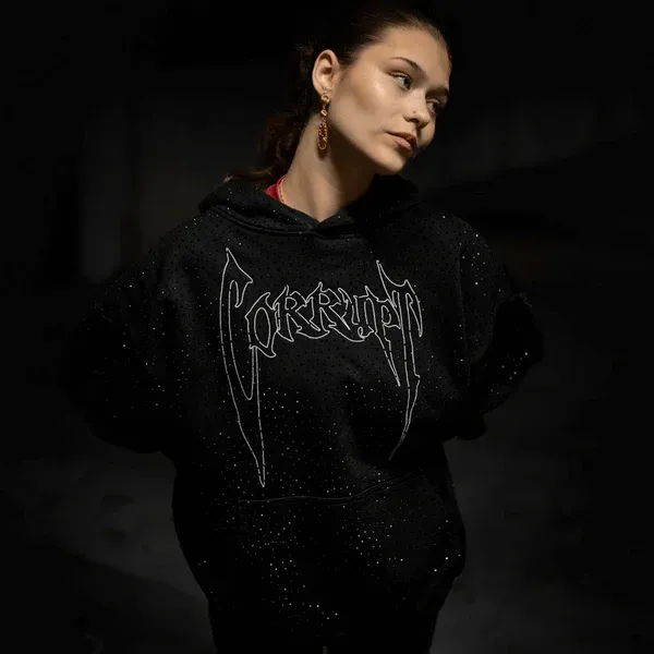 Rhinestone Design Oversized Hoodie