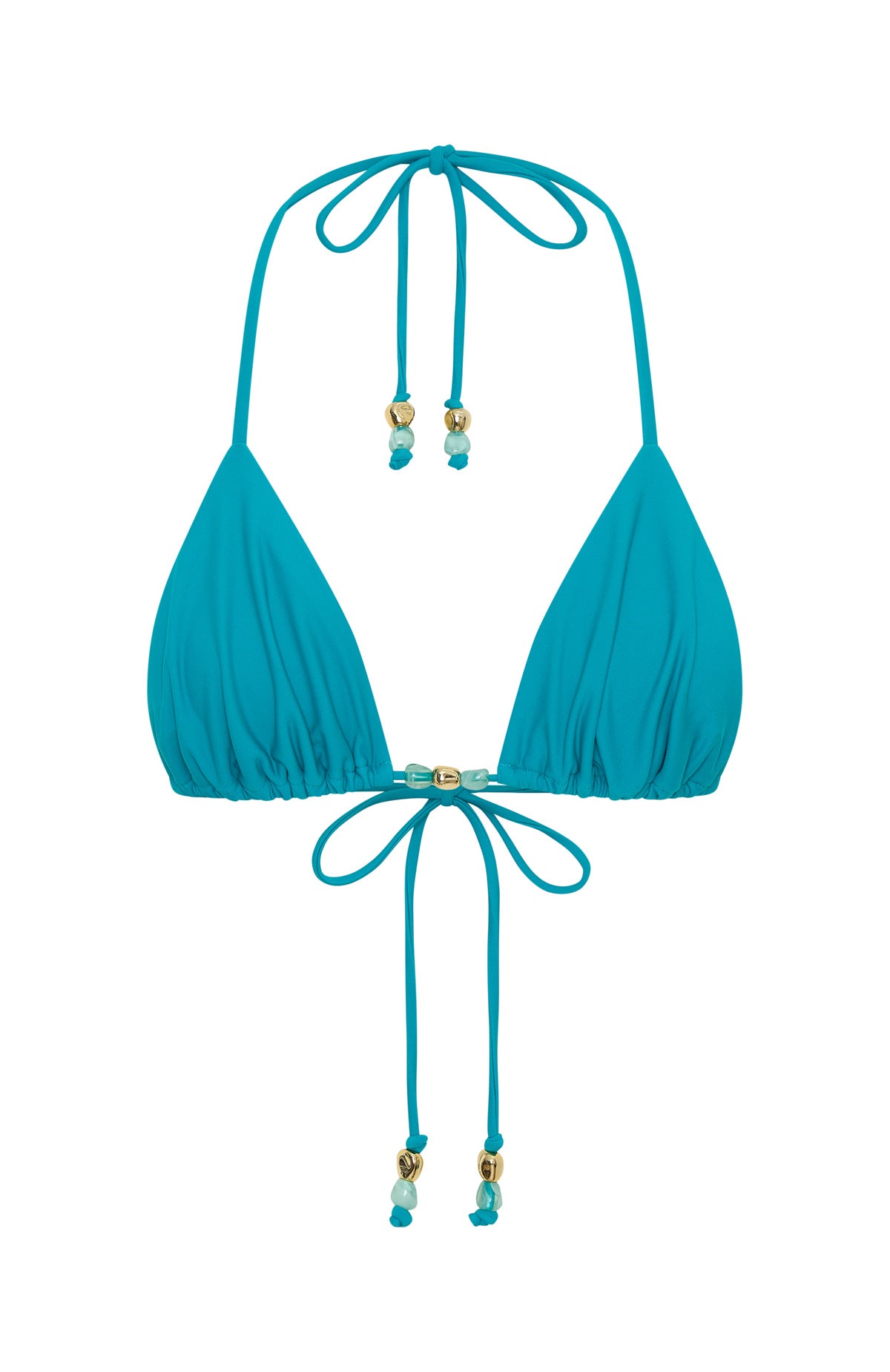Salt-kissed skin in the Sephira Bikini Top Teal Crush. Featuring thin halter straps and a classic triangle silhouette with adjustable back straps for a personalised fit. Finished with beading at under-bust straps and removable padding. Style it with the matching bikini bottoms in Teal Crush and sandals for an effortlessly chic beach‑to‑bar look that feels as good as it looks.