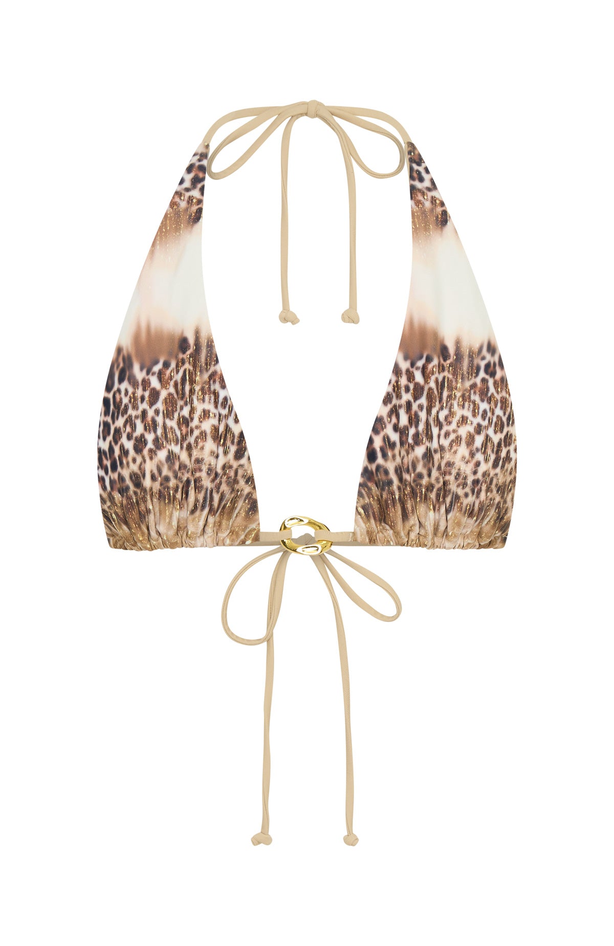 You can never have enough bikini sets and the Stormy Bikini Top in Soundwave is a must have! Features thick self tie halter straps, adjustable bust coverage with drawstring self tie back straps and gold hardware at bust centre. Complete the look with any of the matching bikini bottoms in Soundwave.