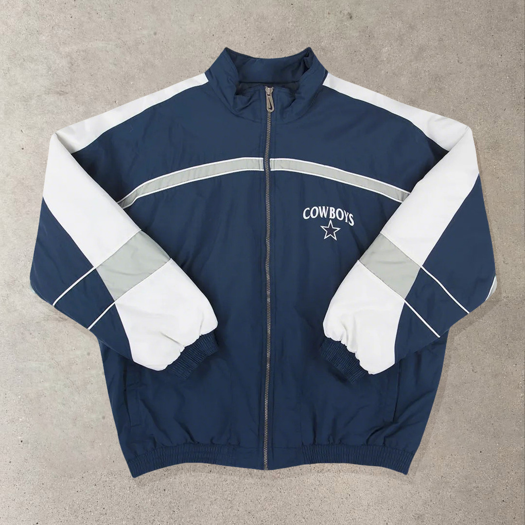 Stylish Cowboys Print Contrast Color Long-sleeved Windproof Jacket
