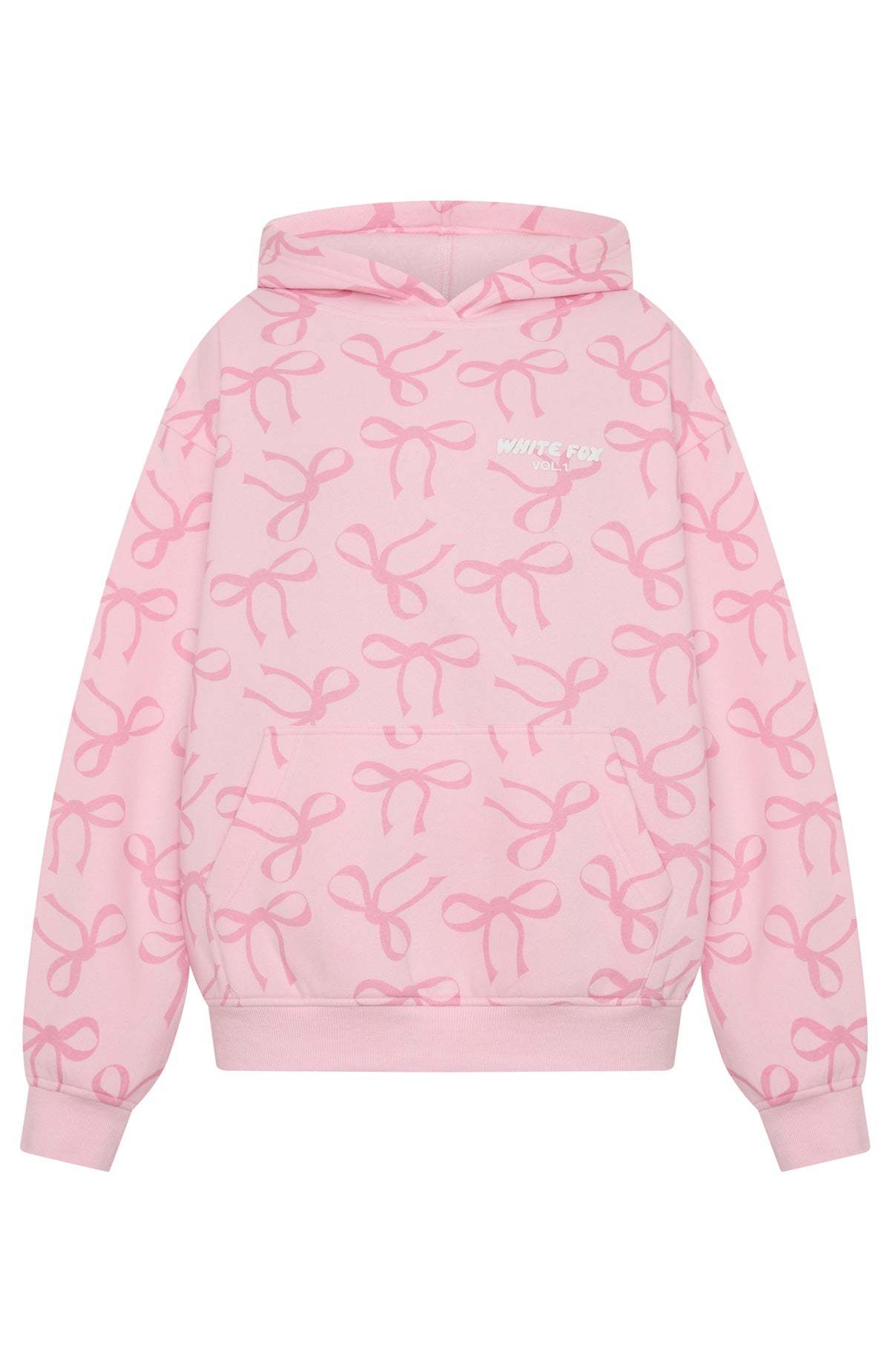 Unwind in style with our prettiest loungewear yet. The Vol. 1 Oversized Printed Hoodie Posy Bow is designed with a relaxed hood, slouched shoulders and ribbed hems, which round out an oversized silhouette. Featuring long sleeves, a roomy front pocket, unlined fleece interior, this hoodie delivers a cosy feel. White Fox puff‑print text embellishes the centre front and back, paired with a printed "made with love" text and bow design. Style with your go-to denim jeans and sneakers for a cute, cosy weekend fit.